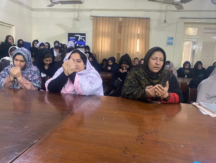 Jinnah College for Women announces with profound sorrow the passing away of one of its students (FSc P-II, 2nd year) on December 11, 2025. May Allah bless her soul with eternal peace and grant her family patience in this difficult time. In her memory, Khatm-e-Quran and Dua-e-Magfarat were held at the college library on December 12, 2025. Students and college teachers participated in the Khatm-e-Quran ceremony, paying tribute to the departed soul.