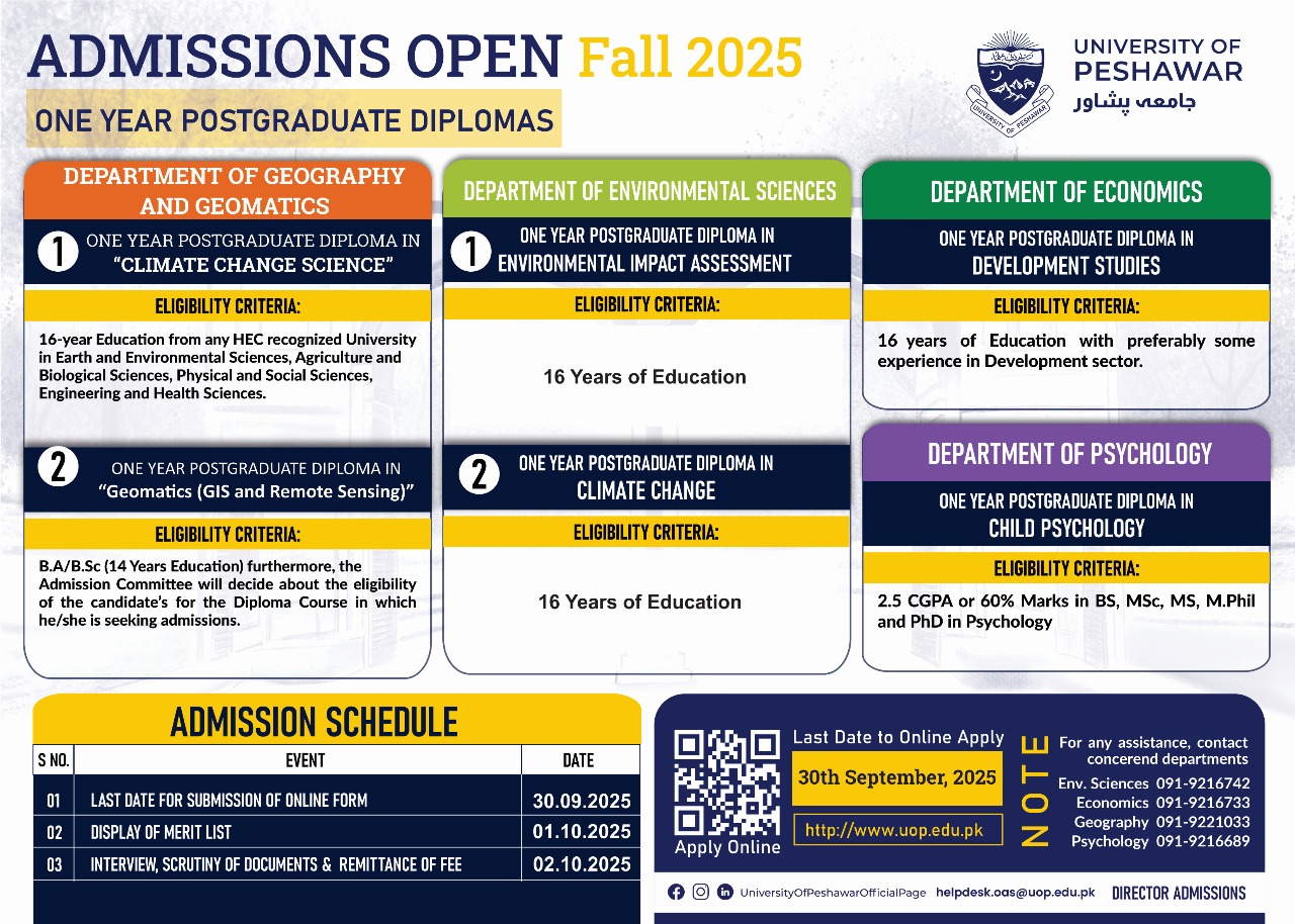 Admissions are Open: One Year Postgraduate Diploma for the Session Fall-2025 20, September, 2025 [Click here to Apply Online] [Click here to View Admission Tutorial]