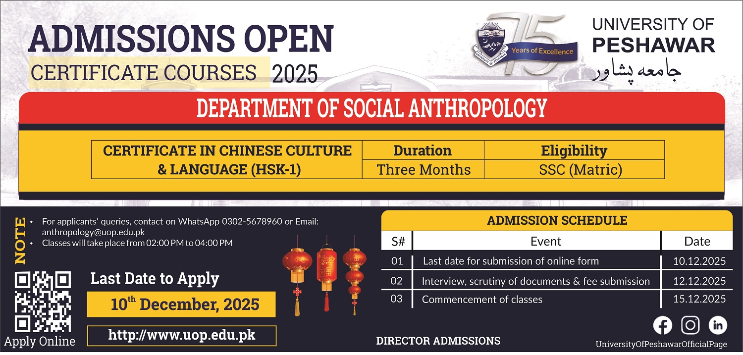 Admissions are Open: Certificate in Chinese Culture and Language (HSK-1) 28, November, 2025 [Click here to Apply Online] [Click here to View Admission Tutorial]