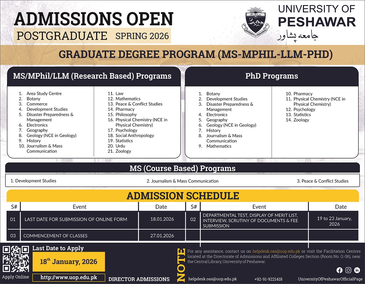 Admissions are Open: Graduate Degree Program (Spring-2026) 06, January, 2026 [Click here to Apply Online] [Click here to View Admission Tutorial]