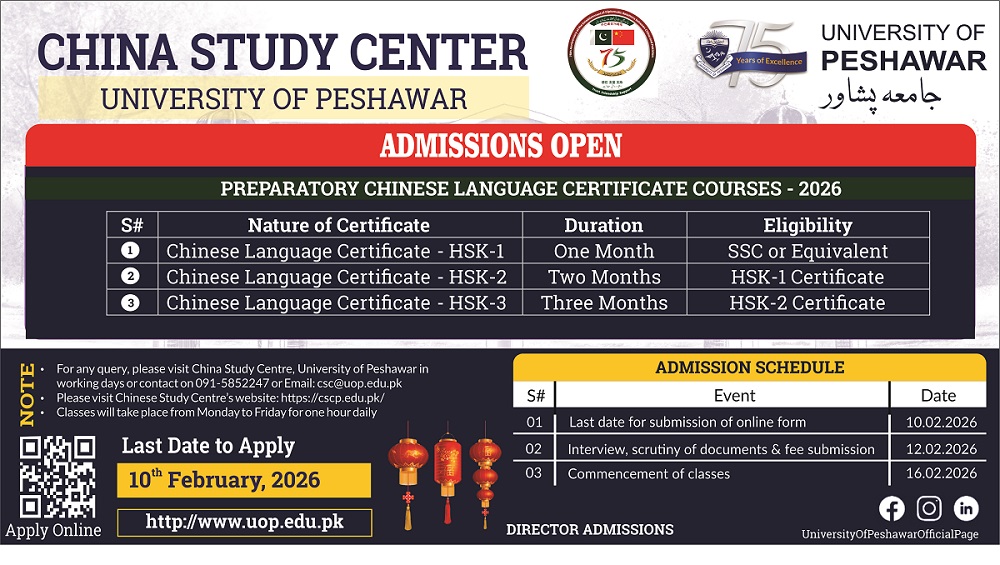 Admissions are Open: Certificate Courses in Chinese Language 27, January, 2026 [Click here to Apply Online] [Click here to View Admission Tutorial]