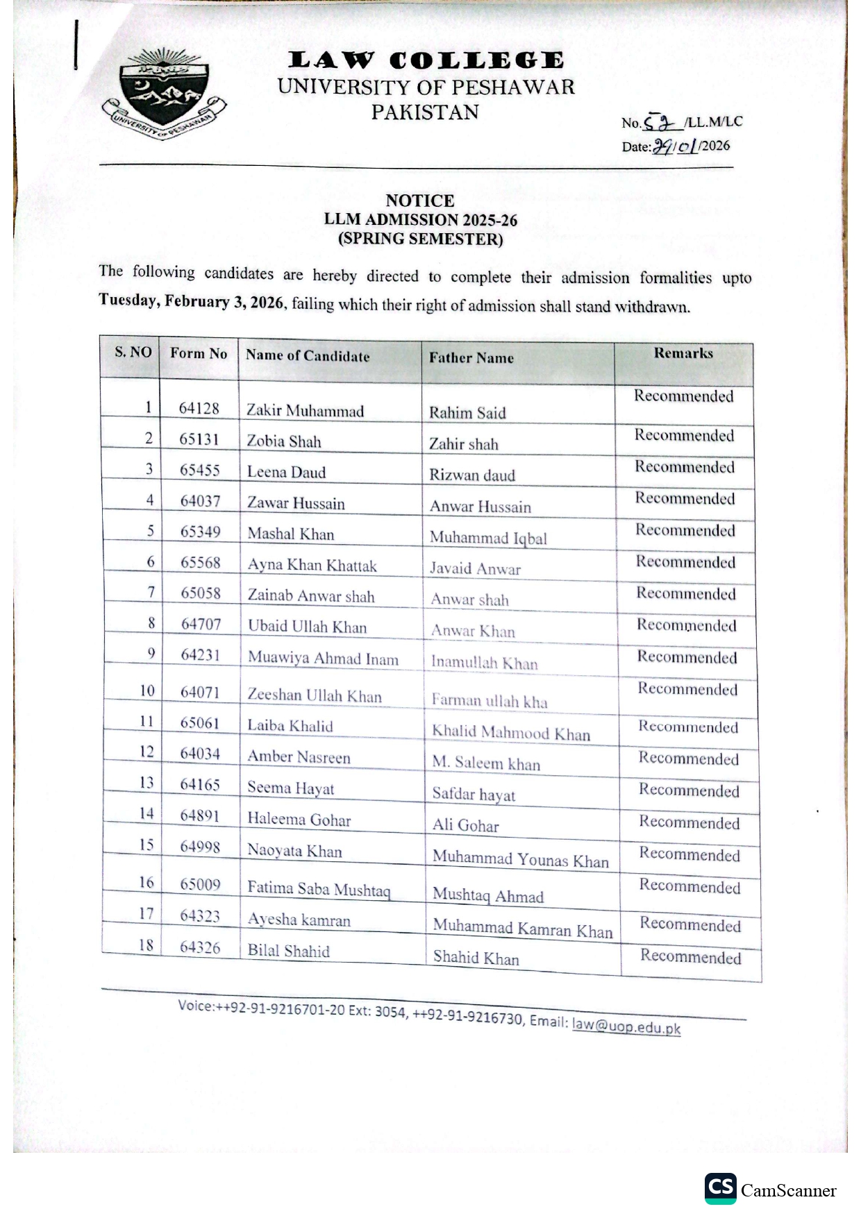 Law College, LLM Admission Qualified Candidates