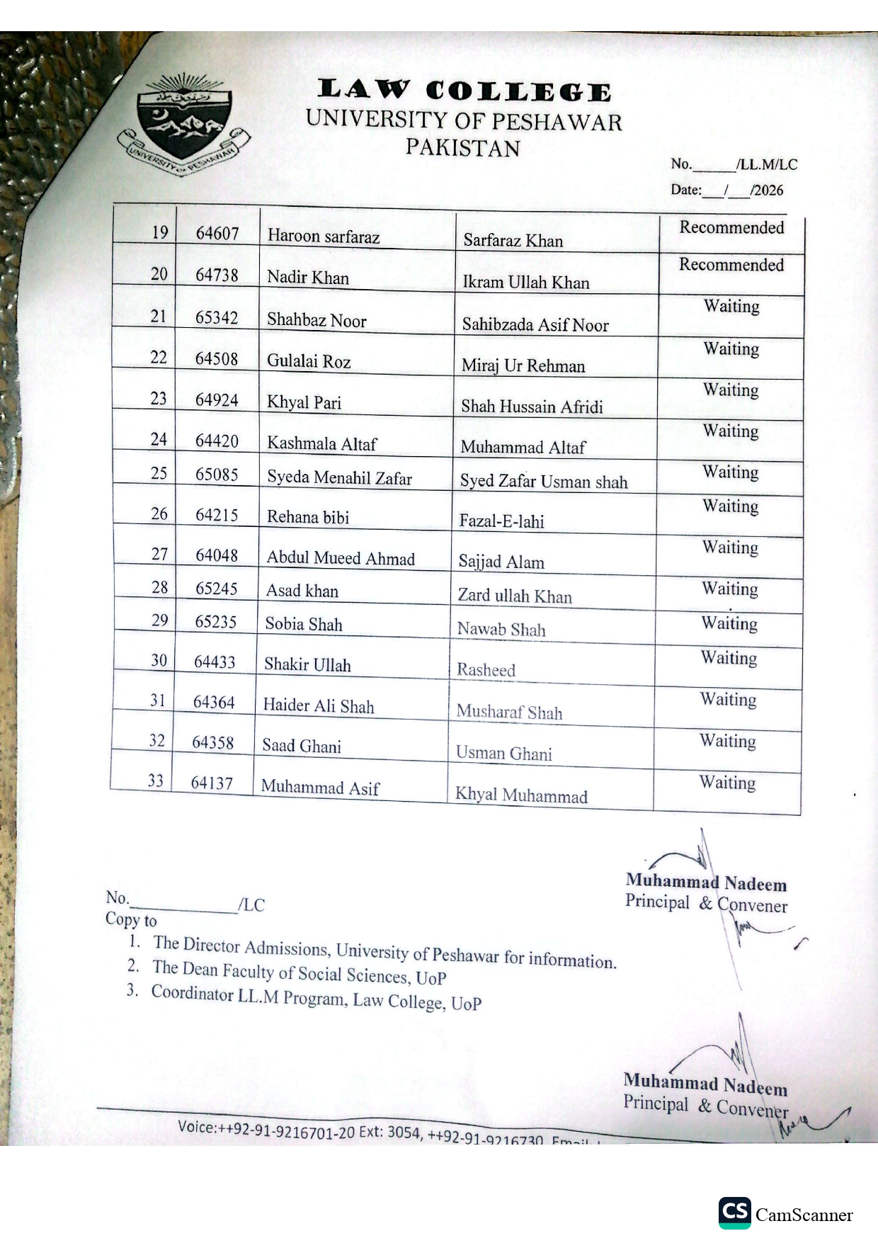 Authorities of the University of Peshawar